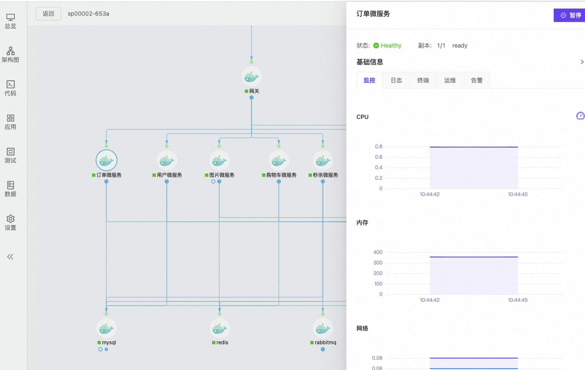 部署完成后,您可以对应用进行运维:点击应用,双击某个组件