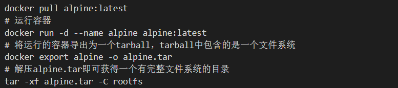 我们一般用 docker pull 从远端的镜像仓库获得镜像,镜像里面包含的是一个根文件系统,那如何通过一个镜像,手动创建一个容器呢?